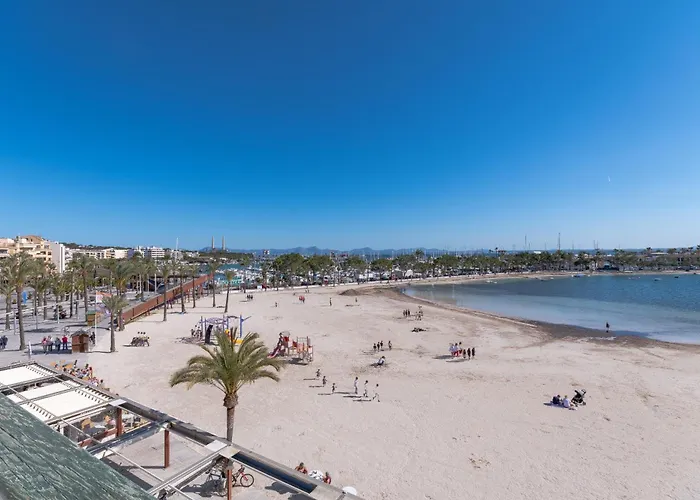 The 55 m² First Line Apartment Alcudia enjoys a beachfront location and provides easy access to the Accessible Alcudia White-Sand Beach 17 minutes' walk away. Wi-Fi is available for guests' business or leisure needs.